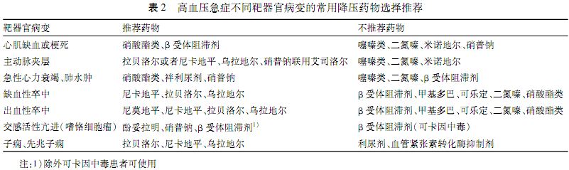 关于高血压急症的优化处理目前仍存在一定争议,首先,在决定患者处理流程前,应考虑患者病史,然后确定降压目标值,降压的速度,根据患者合并症选择合适的降压药物。对高血压急症患者,推荐使用静脉药物降压治疗,高血压亚急症患者使用口服药物缓慢降压。
