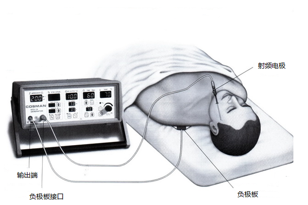 通过将射频针穿刺进入三叉神经节,射频针尖端产生热量,选择性阻断三叉神经纤维中传递痛觉的粗纤维,达到治疗疼痛,同时避免干扰面部正常感觉的目的。