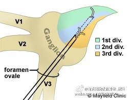 缺点:有效率较低,约60%-70%;复发率较高,5年复发率约50%;治疗后可能会合并面部麻木、咀嚼肌无力、角膜感觉减退等;术中疼痛比较明显;三叉神经第I支疼痛患者不适合射频治疗。