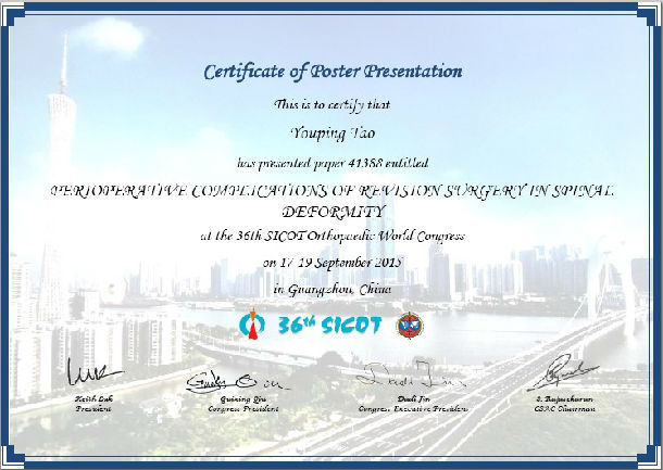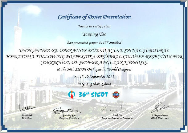 第三十六届SICOT世界骨科大会(SICOT2015)于2015年9月17-19日在中国-广州举行,本届大会是继SICOT中国部2011年成立以来首次在中国大陆地区举办。