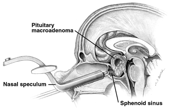 (中国专利:CN2489732,2002-05-08.)垂体腺瘤扫描片均应达到能观察A正侧位蝶窦的大小、壁厚、气化程度,B蝶窦中隔的数量、位置,C蝶鞍的大小、鞍底是否侵蚀、前床突及鞍背的移位程度,D肿瘤与蝶鞍的关系,E鼻中隔是否偏移、前鼻棘清晰、犁状骨规则。