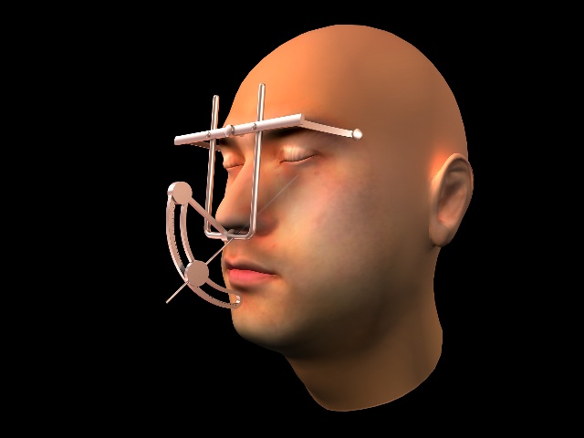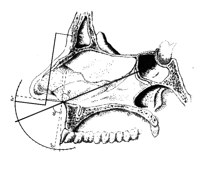 定位方法:眉弓中点、鼻棘-鞍、鼻棘夹角定位法:术前在CT中线矢状位断层扫描片上测量鞍底中点(A)与前鼻棘(B)连线长度和眉弓中点(C)与前鼻棘的夹角,该长度为5~8cm,平均为6.8cm,夹角为56°~64°,平均为60°,术中依据A-B-C夹角及长度剪裁好相应的胶片,即可引导手术入路的角度和深度。