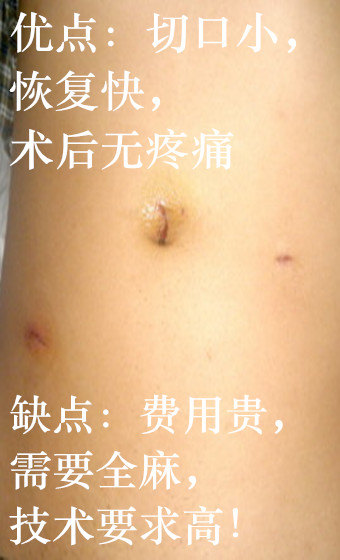 4.传统手术方式:患者术后疼痛明显,恢复慢,复发率高,优点费用低,主要用于青年患者,腹壁肌肉强壮的!