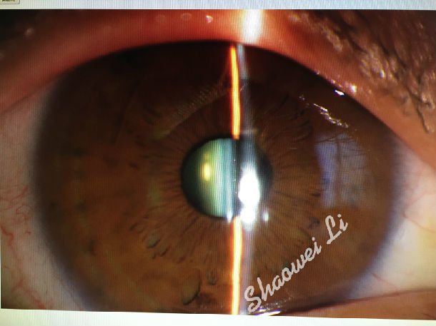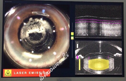 日前我们利用最先进的飞秒激光白内障技术,治疗了一例ICL多年后发生白内障的患者,取得了良好的效果。患者的主要问题是有接近200度的角膜散光,而他因为是高度近视,需要植入的人工晶状体度数仅为+4D,这么低的度数没有带矫正散光功能的Toric晶体。所以我们采用了飞秒激光同时矫正其散光的方法,结果术后第一天就达到了0.8的视力!